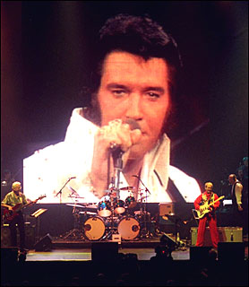 Concert-Tournee auf, bei der Elvis via Video-Screen mit dabei